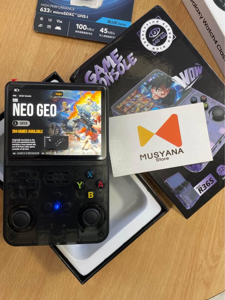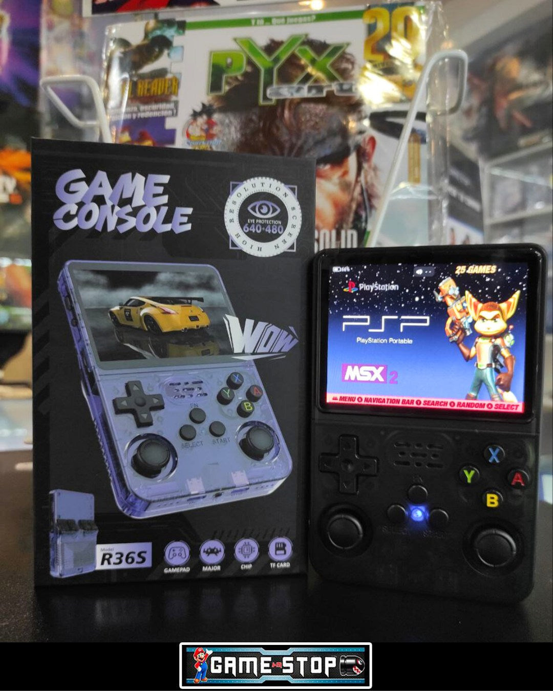 1 consola R36S con 128GB y +15.000 juegos, 1 cable de carga USB-C, 1 manual de usuario, Empaque seguro, Garantía de satisfacción (1 AÑO)